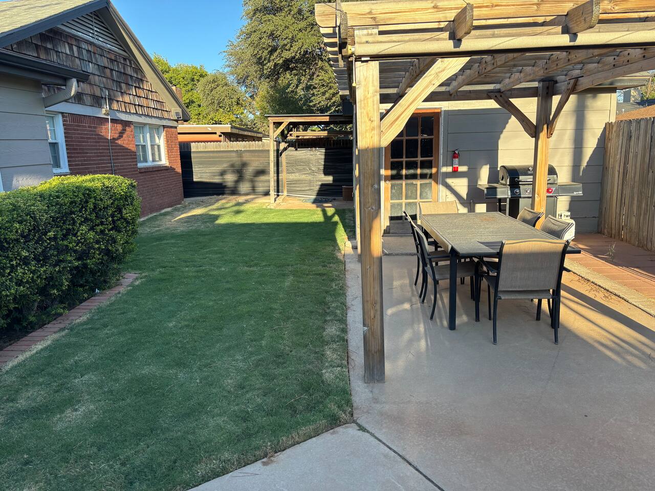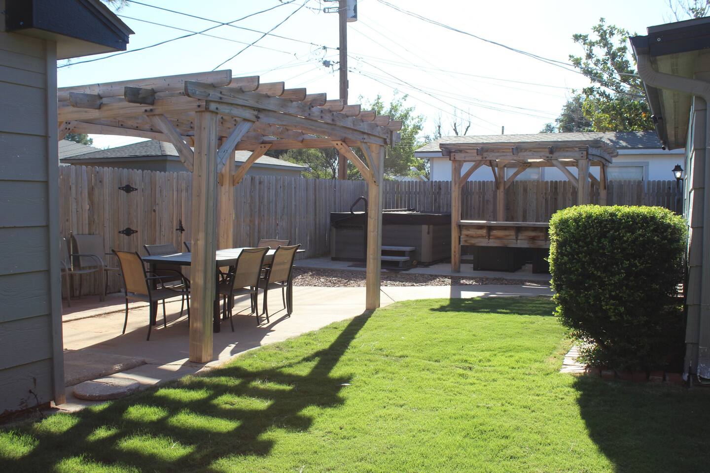 Spacious Midland Retreat with Hot Tub, Game Room & Outdoor Oasis Welcome to your 2,500 SQF Midland getaway! This stylish 4-bedroom, 2-bath home is designed for relaxation, fun, and comfort — perfect for families, business travelers, or groups looking to unwind in the heart of town. Step inside and enjoy a bright, open layout featuring modern décor and plenty of room to spread out. The home boasts two massive 75” TVs for movie nights or game-day viewing, plus a separate TV lounge with a 14’ x 12’ sectional that comfortably seats everyone. Whether you’re watching your favorite team or hosting a family movie marathon, this space was made for comfort. Feeling competitive? Head to the game room, where you’ll find several classic arcade games — including Golden Tee and NFL Blitz — guaranteed to keep both kids and adults entertained for hours. When it’s time to eat, the fully equipped kitchen offers everything you need to cook up your favorite meals. Or take things outdoors to the beautiful backyard, featuring a grill, shaded pergolas, and plenty of seating for outdoor dining. After dinner, unwind in the large hot tub under the stars — the perfect way to end your day in West Texas. Each of the four bedrooms is thoughtfully designed with comfort in mind, featuring cozy bedding and stylish touches that make you feel right at home. The two full bathrooms are stocked with essentials and offer plenty of space for everyone to get ready. Located centrally in Midland, you’ll be close to everything — from downtown shops and restaurants to grocery stores, coffee spots, and local attractions. Whether you’re in town for work, visiting friends and family, or exploring the Permian Basin, this home puts you minutes from it all. Highlights: 4 Bedrooms / 2 Bathrooms Game Room with Golden Tee & NFL Blitz Two 75” TVs + Separate Lounge with Huge Sectional Smart TVs in all bedrooms Outdoor Dining Area with Grill & Shaded Pergolas Spacious Hot Tub Fully Equipped Kitchen Central Location Near Downtown Midland Book your stay today and enjoy the perfect blend of fun, comfort, and convenience at your home away from home in Midland!